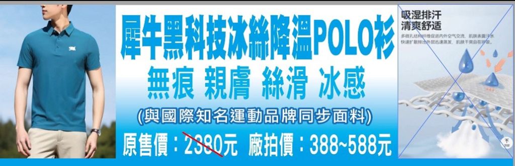 《原廠犀牛黑科技冰涼衣特賣》到中和了!夏天又悶又濕,沒有穿涼感衣褲,出門簡直是酷刑,《犀牛冰涼衣》全館98元起,冰涼衣褲任搭四件990元!夏天防曬的抗UV冰涼外套588元起,大尺碼也有(5L),CP值超高,怕熱→就穿犀牛冰涼衣立馬降温!