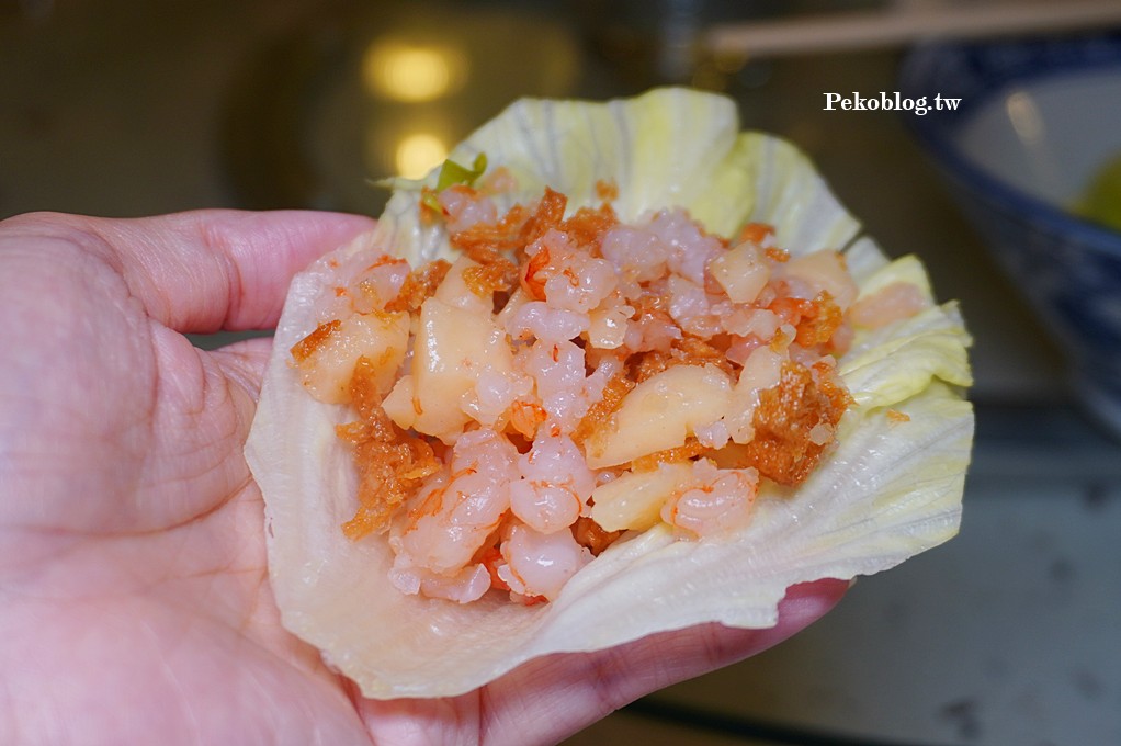 一份四片,點餐時記得留意。新鮮西洋菜包進明蝦丁+荸薺+脆油條片,口感爽脆爆表、吃完還想再吃。